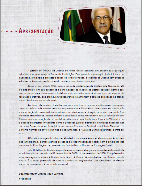 Relatório de gestão: 2006-2008: [Presidência]: Desembargador Orlando Adão Carvalho