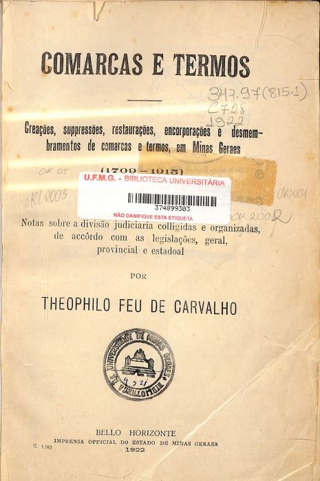 Criações, supressões, restaurações, incorporações e desmembramentos de comarcas e termos, em Minas Gerais.